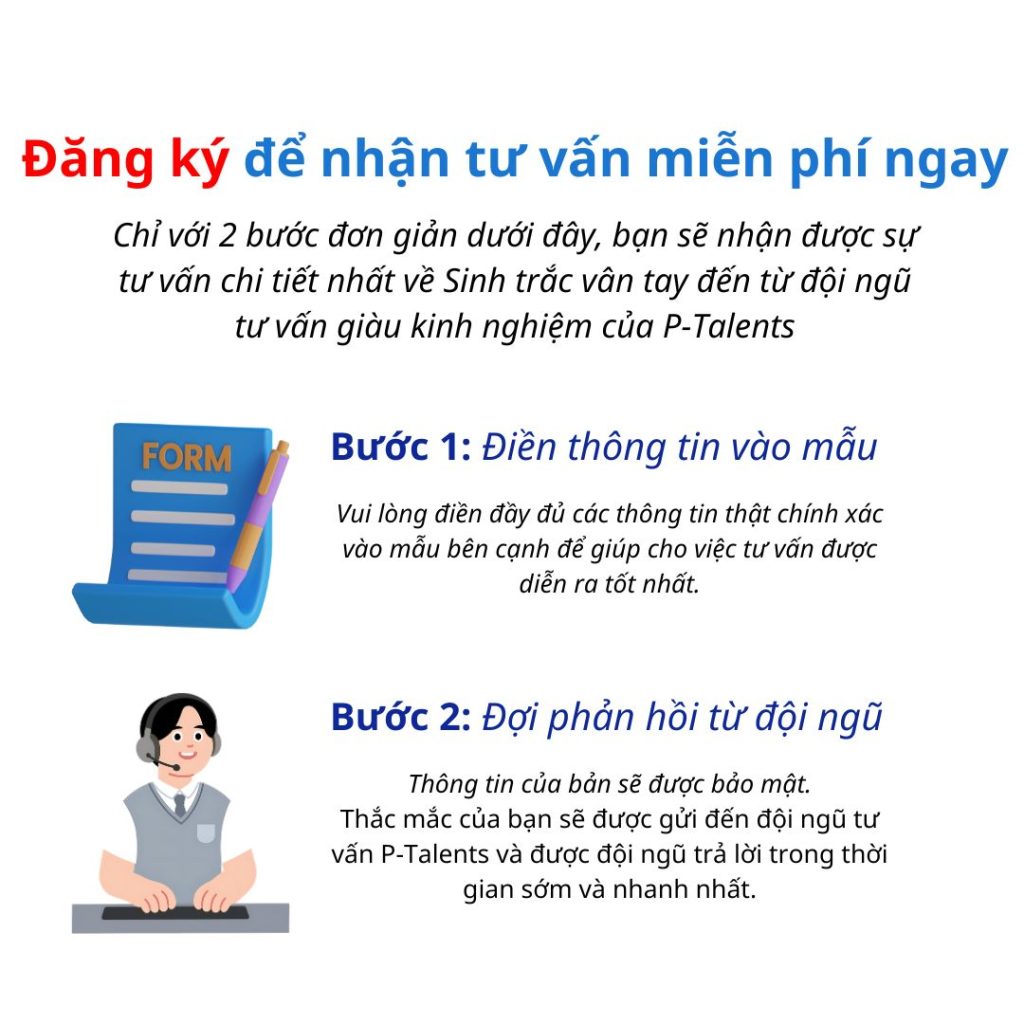Với nền tảng chuyên môn vững chắc, P-Talents sở hữu đội ngũ chuyên gia có hơn 15 năm nghiên cứu và phát triển công cụ sinh trắc vân tay tại Việt Nam, đồng thời nằm trong Top 4 chuyên gia tư vấn tâm lý – hướng nghiệp hàng đầu khu vực miền Bắc. Đến nay, P-Talents đã thực hiện hơn 20.000 báo cáo sinh trắc vân tay cho khách hàng ở nhiều độ tuổi, từ trẻ em đến người trưởng thành, và có 5 năm kinh nghiệm tư vấn định hướng cho hàng nghìn học sinh, sinh viên, bao gồm cả du học và lao động quốc tế.